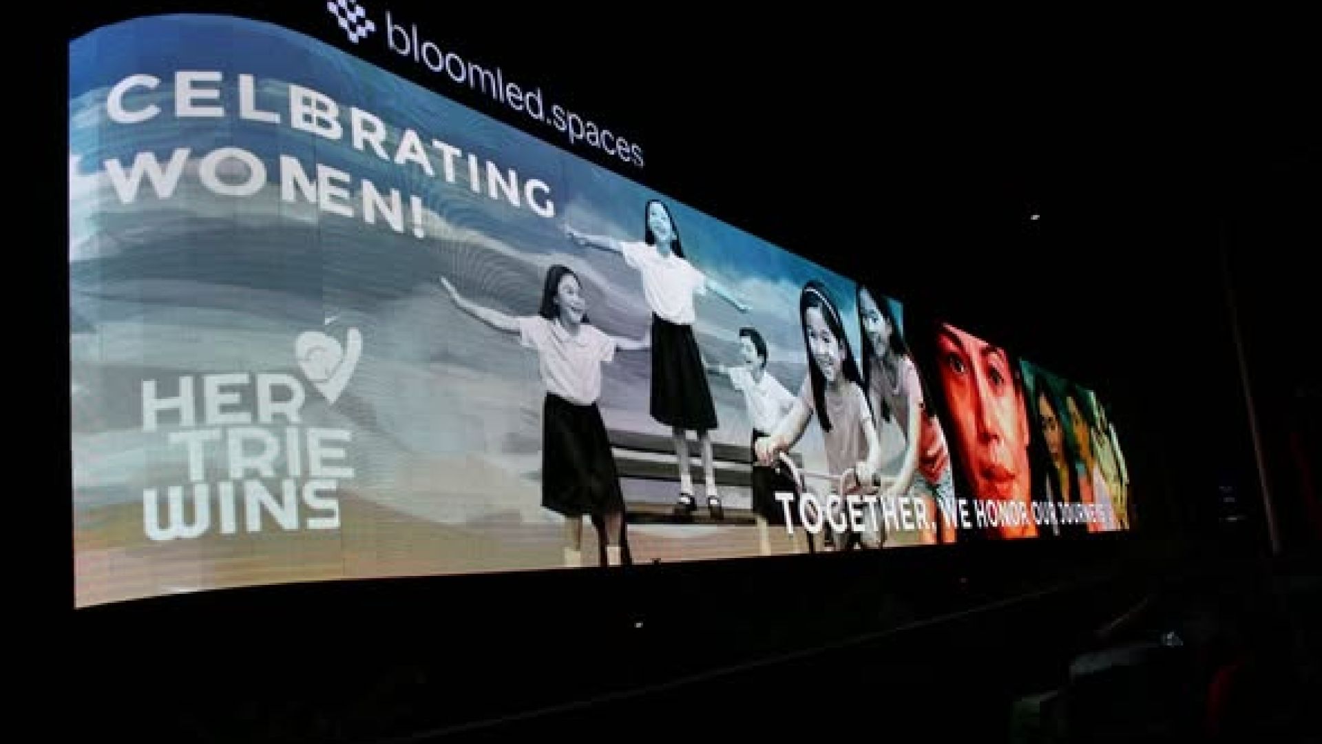 Rebie Picazo Ramoso‘s digital painting, HER TRIBE WINS is officially lighting up the giant LED billboard!