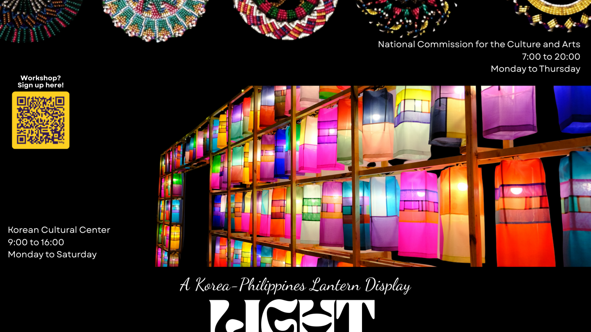 Beyond their illuminating beauty, this first-ever pairing of Jinju silk lanterns with the Filipino parol tells a shared story – a story of creativity and the enduring friendship between Korea and the Philippines. The KCC and NCCA invite everyone to experience this display at the National Commission for Culture and the Arts Building in Intramuros, Manila, from Mondays to Thursdays, 9AM to 8PM*, and at the Korean Cultural Center in Taguig City from Mondays to Saturdays, 9AM to 4PM.
