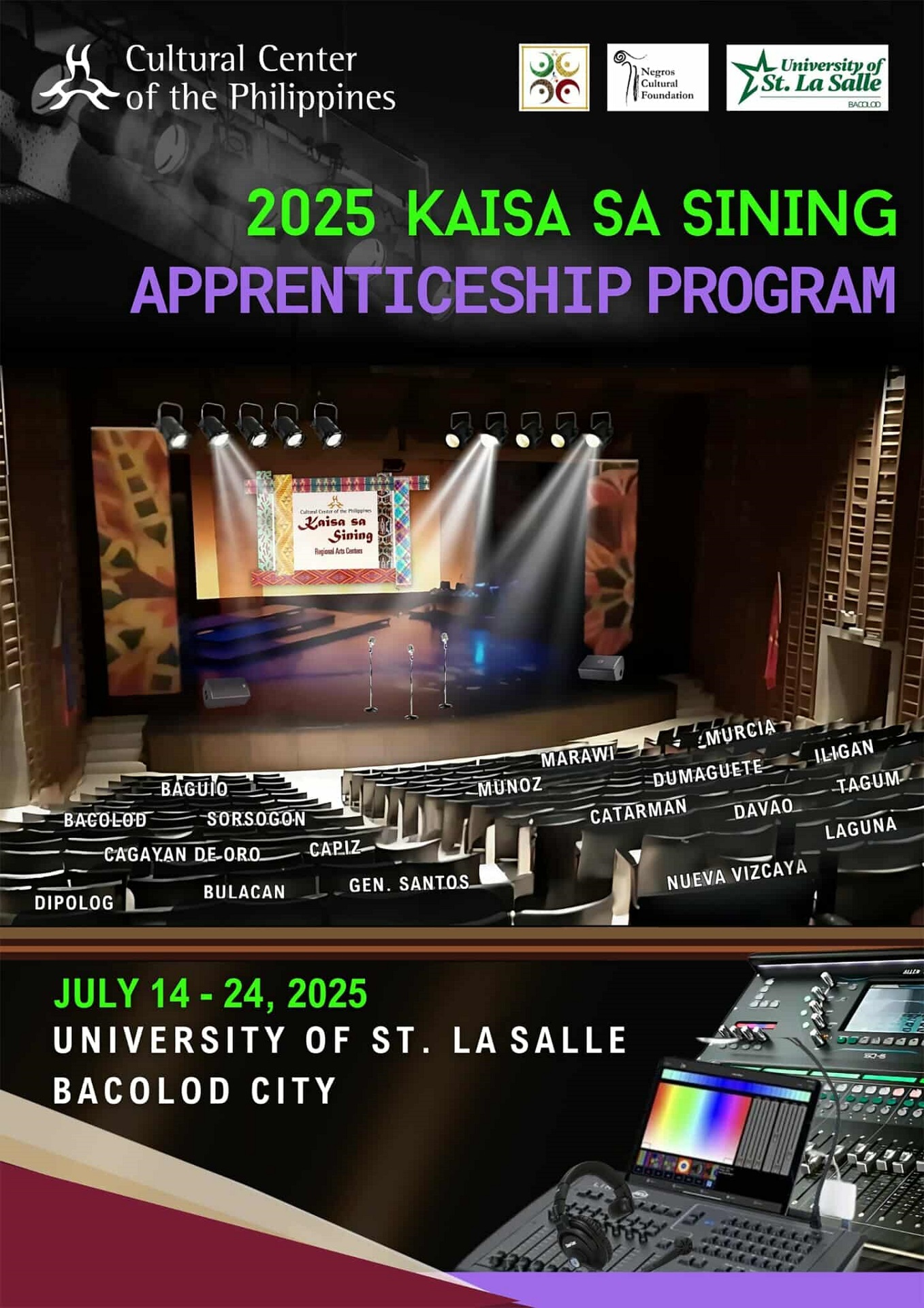 The Cultural Center of the Philippines (CCP), through the Cultural Exchange Department (CED), brings the 2025 Kaisa sa Sining (KSS) Apprenticeship Program to Bacolod City from July 15 to 24, 2025.