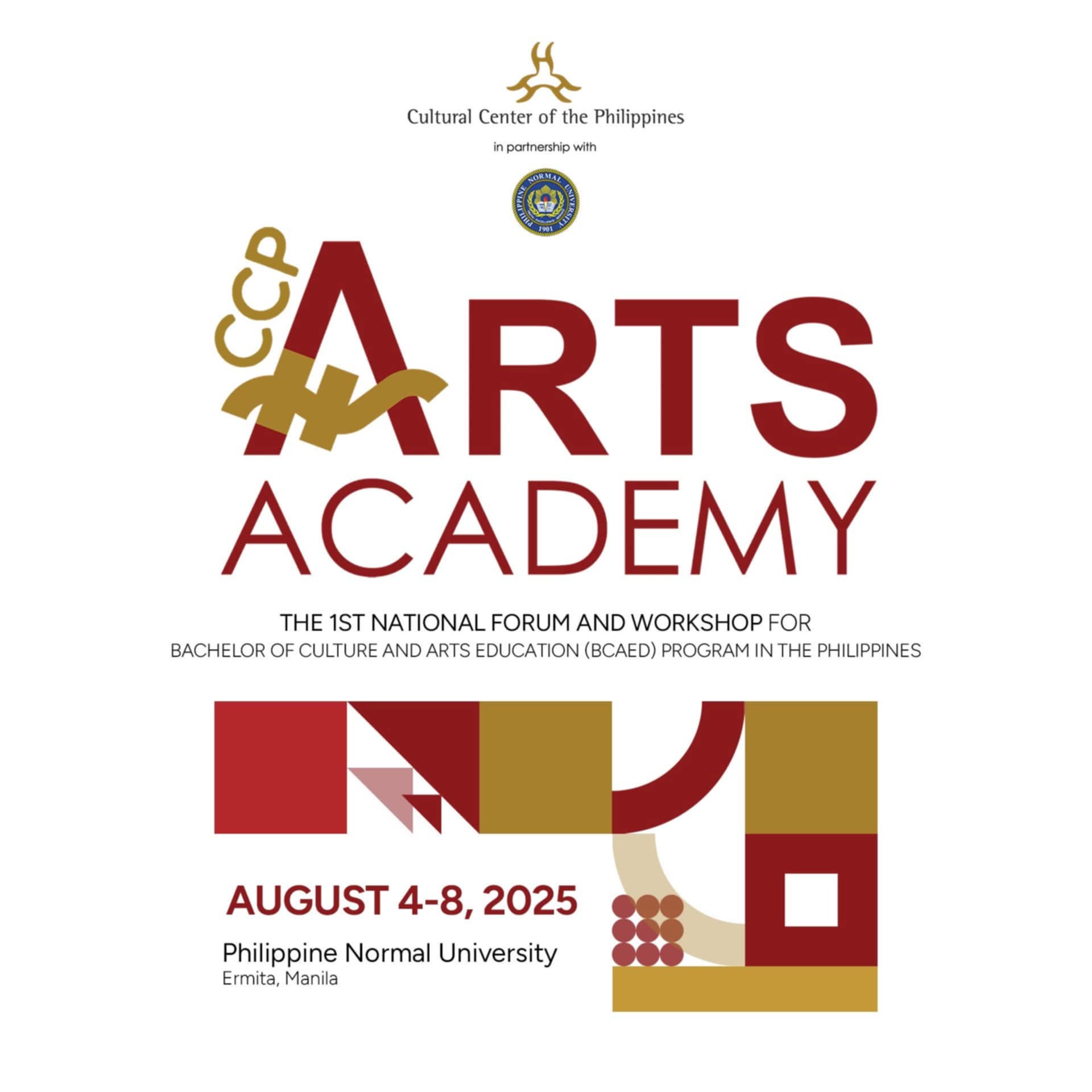 The Cultural Center of the Philippines (CCP), in partnership with the Philippine Normal University (PNU), conducts the first-ever national training program for Bachelor of Culture and Arts Education (BCAED) teachers and administrators on August 4 to 8, 2025, at Tanghalang Ignacio B. Gimenez (TIG), as well as at the PNU Gymnasium and selected rooms in its Bonifacio P. Sibayan (BPS) building.