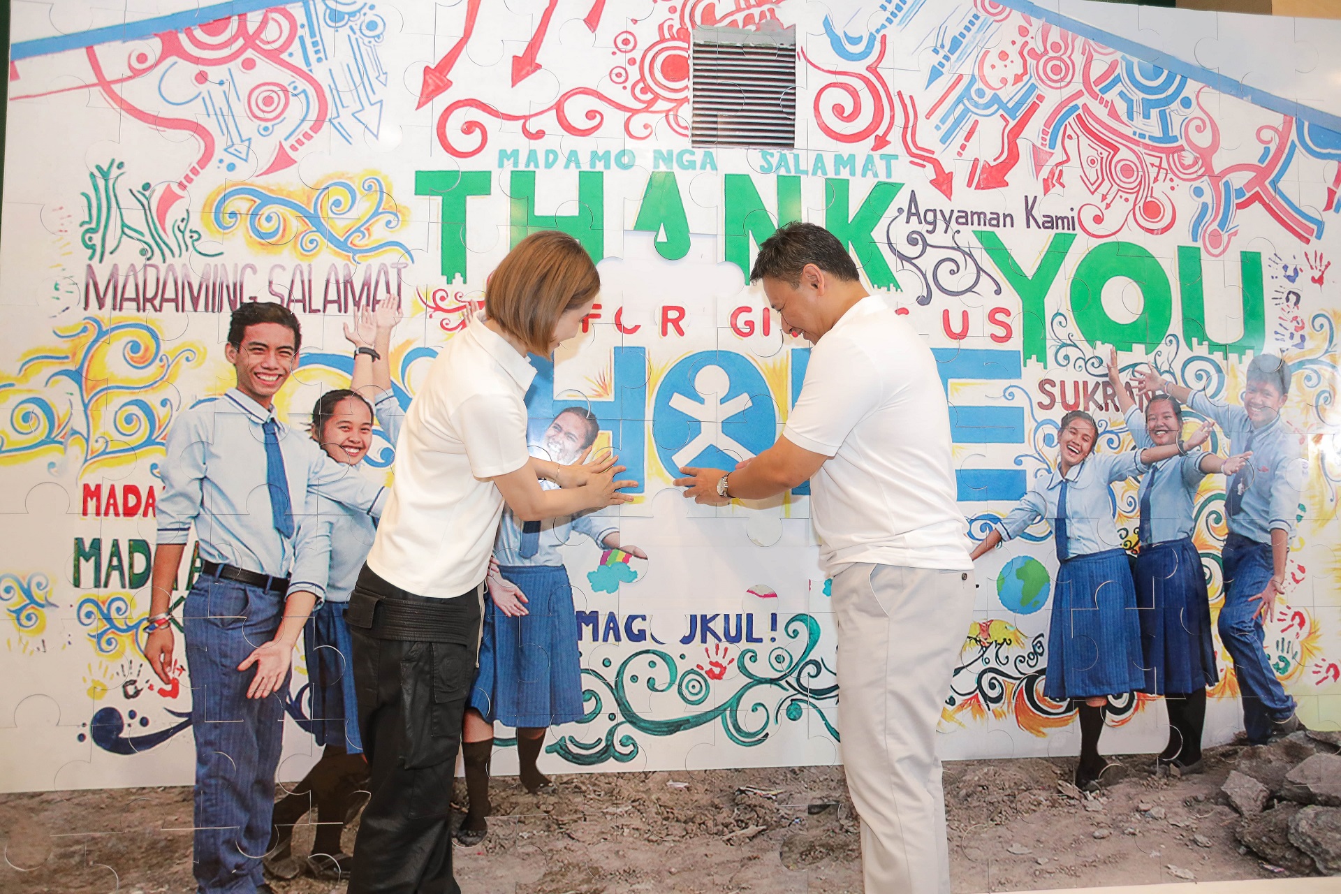 HOPE Founder Ms. Nanette Medved-Po and DepEd Secretary Sonny Angara place a puzzle piece on the HOPE Wall—a symbolic gesture of partnership and shared commitment to building a brighter future for public school students across the Philippines.