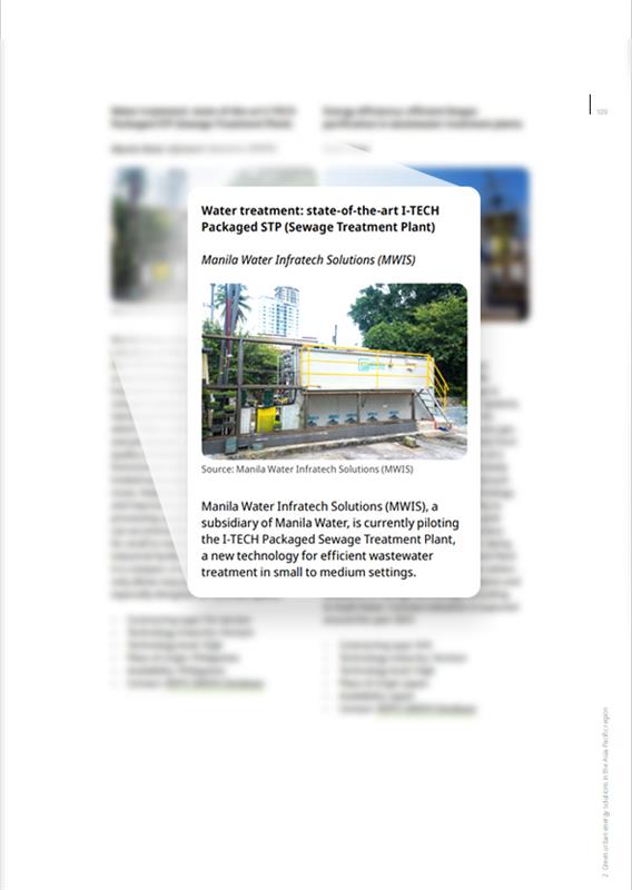 Among the technology solutions highlighted in the section ‘Green Urban Energy Solutions in the Asia-Pacific Region – Energy Efficiency for Water Utilities,’ the i-TECH Packaged STP was recognized as a new technology for efficient wastewater treatment in small to medium settings with the use of advanced membrane bioreactor (MBR) technology.