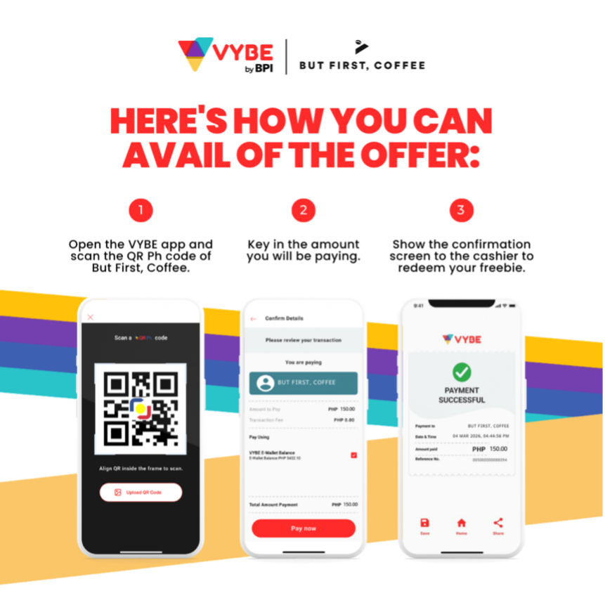 “We see a strong alignment between VYBE’s promise of a rewarding e-wallet and But First, Coffee’s commitment to providing quality beverages more accessible to everyday consumers,” said Frederick Faustino, Head of Digital Partnerships and Ecosystems at BPI. “As their footprint continues to grow, this partnership allows us to incorporate VYBE into the everyday spending moments of more Filipinos,” he added.
