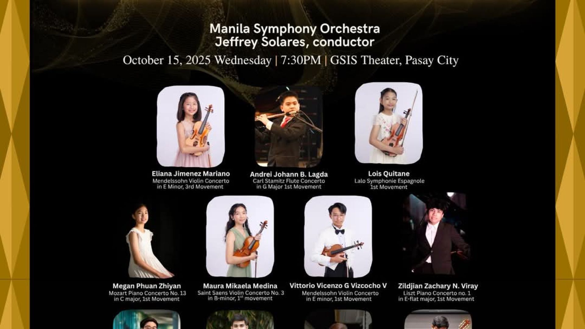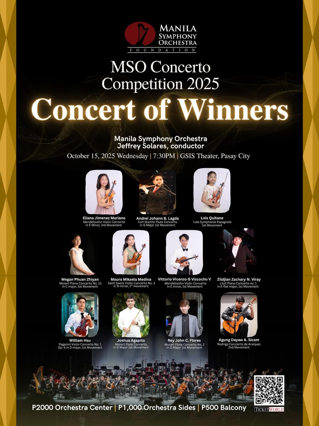 The winners will be rehearsing with the MSO conducted by its executive director and associate conductor Jeffrey Solares, and will be presented in a Concert of Winners on October 15, 2025 at the
