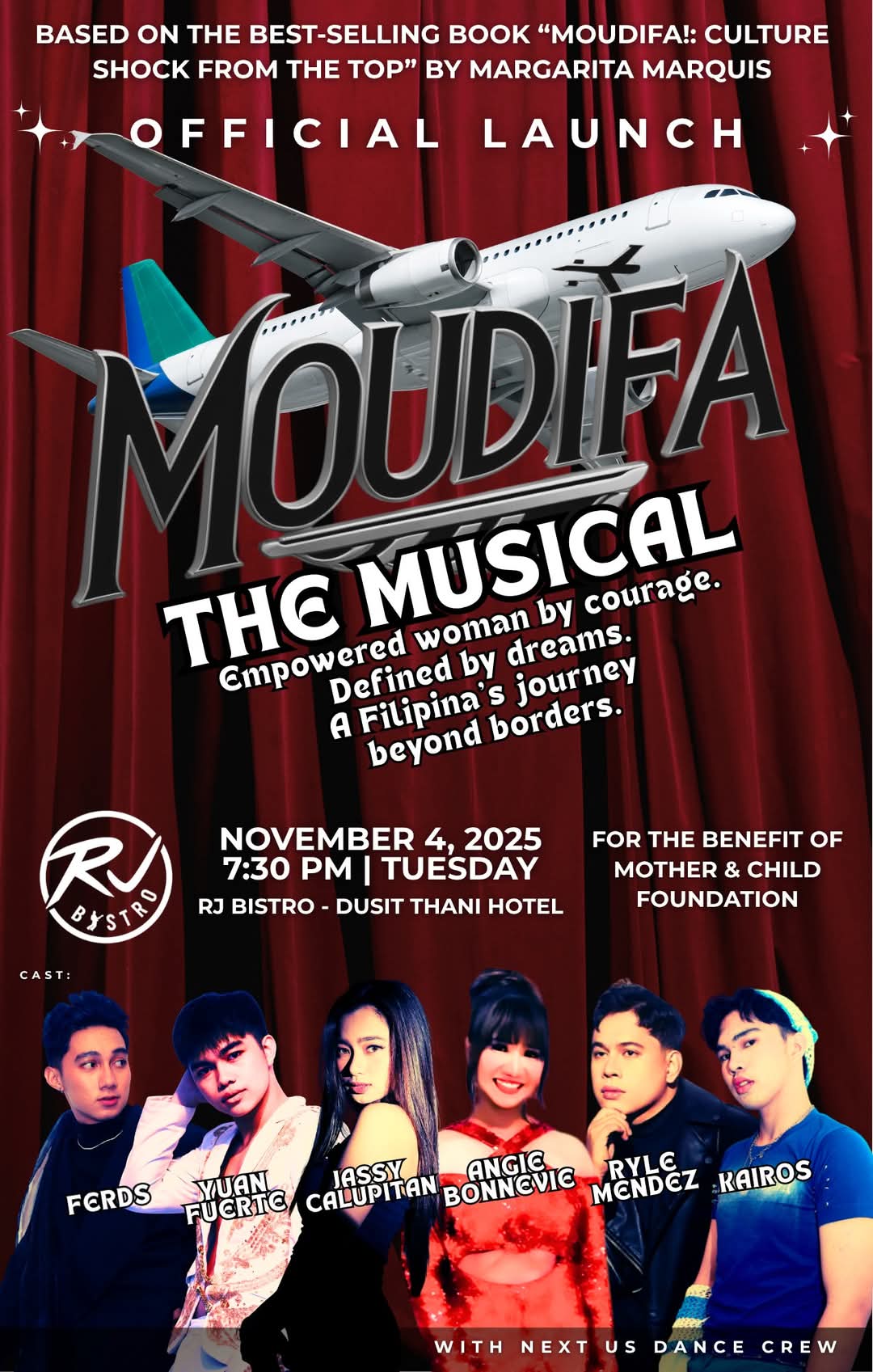 - Margarita Marquis (Visionary, Composer, Lyricist, Executive Producer): As the author of the best-selling book “Moudifa!: Culture Shock from the Top,” Marquis is the soul of the project. She poured her own life and heart into crafting the entire score—a powerful blend of soulful OPM, emotional ballads, and Middle Eastern-inspired melodies. Her music captures the journey from innocence to triumph, ensuring the story remains authentic and deeply personal.