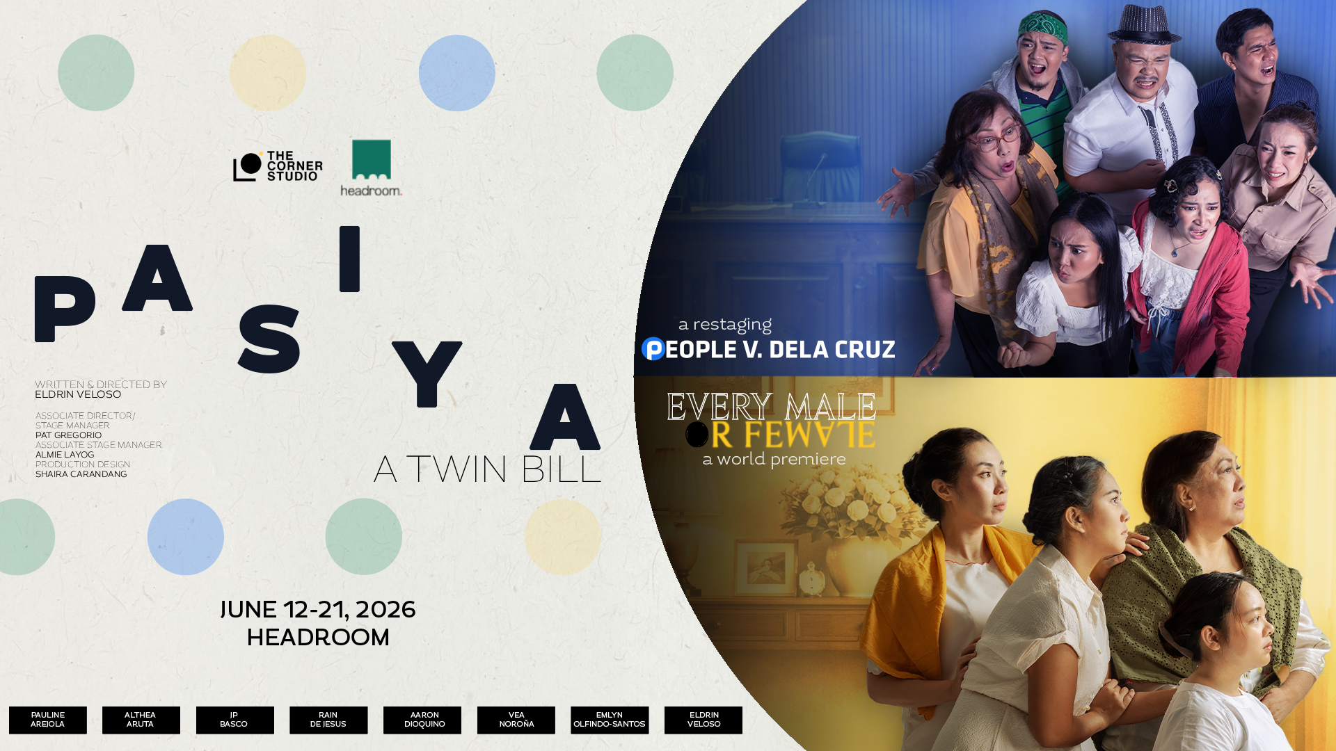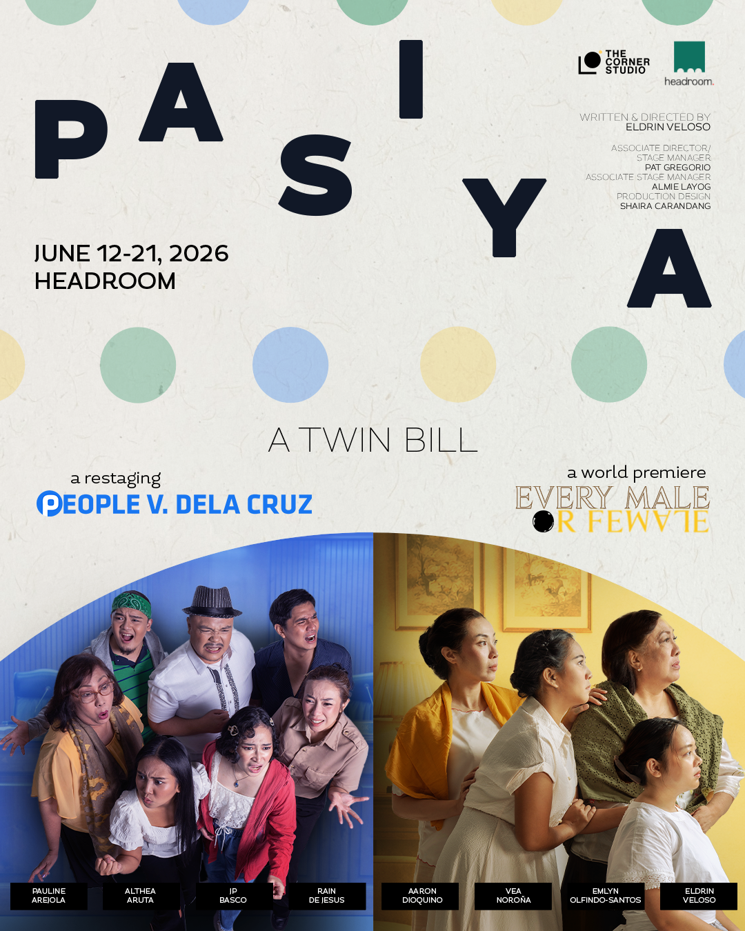 “For Headroom, PASIYA is exactly the kind of work we want our space to hold: stories that are intimate, urgent, and deeply rooted in the Filipino experience,” says Headroom’s Kevin Nieves. “As a design firm opening our venue to live performances, we are excited to witness our space come alive with stories that linger, that engages the audience with questions, and invites them to ponder even after the curtains have closed.”