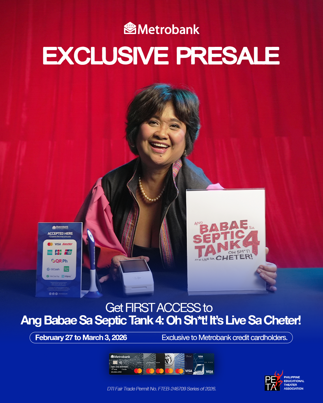 QUEZON CITY, Philippines — Ticket selling officially begins on February 27 for the Philippine Educational Theater Association’s (PETA) biggest theatrical event of 2026, Ang Babae Sa Septic Tank 4: Oh Sh*t! It’s Live Sa Cheter! —with Metrobank credit cardholders enjoying exclusive first access to the highly anticipated production.